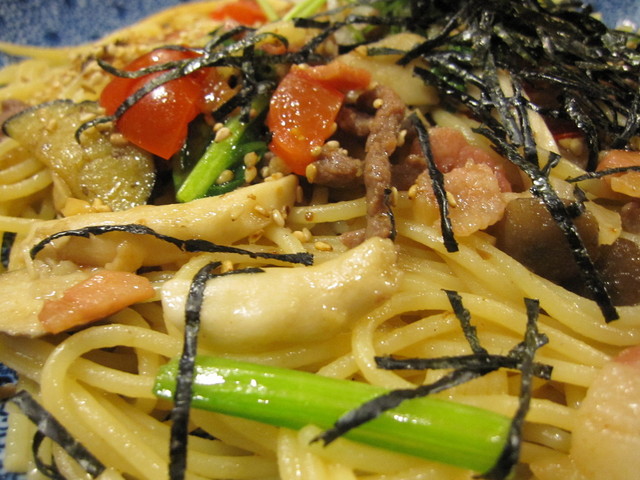 醤油の香ばしさで食欲アップ 牛肉ときのことほうれん草の和風バター醤油パスタ Myuの徒然日記